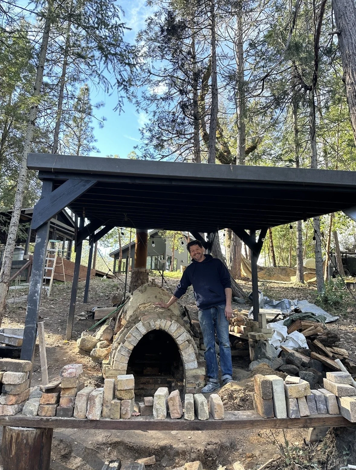 Photo: Jesse Hanshaw with the kiln he built onsite at The Ohmapi Nature Project in Nevada City, CA.