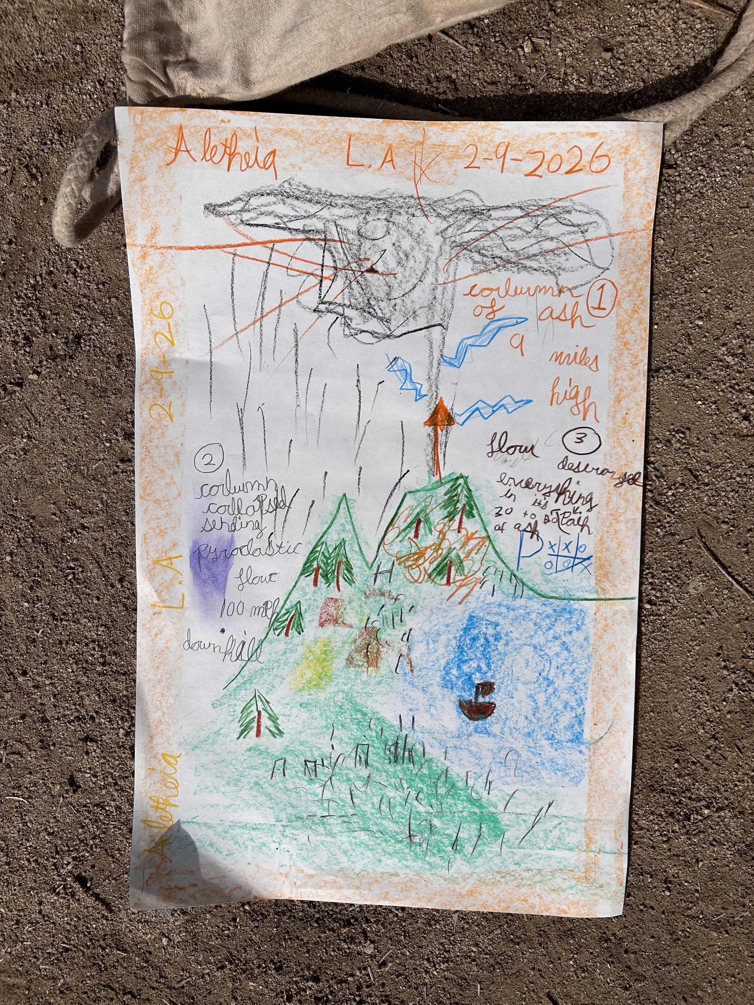 Listening to his words describing the towering cloud rising into the sky and ash falling like snow helped the children imagine what it might have been like to witness such an event.