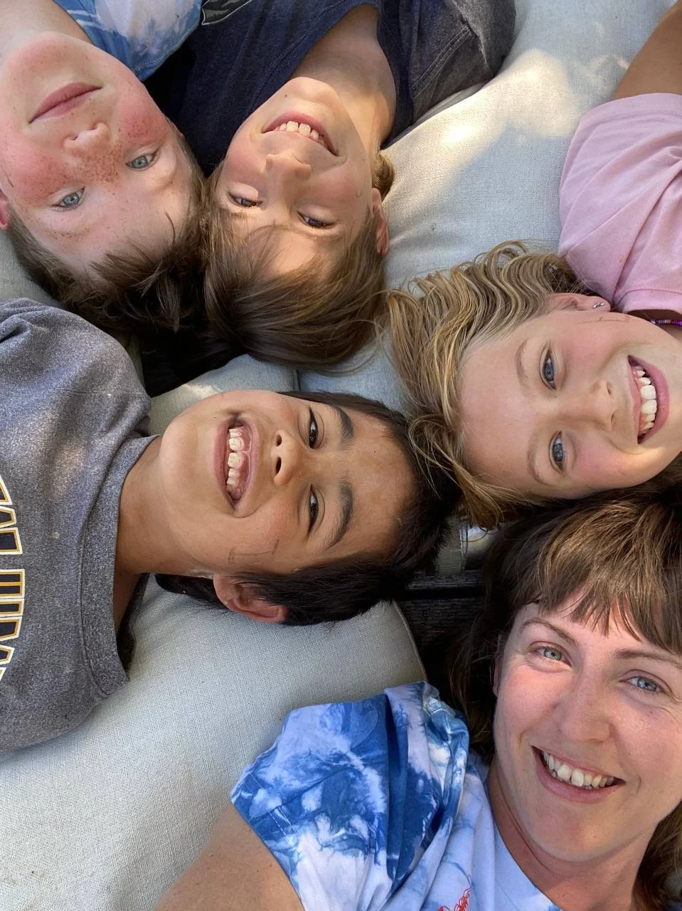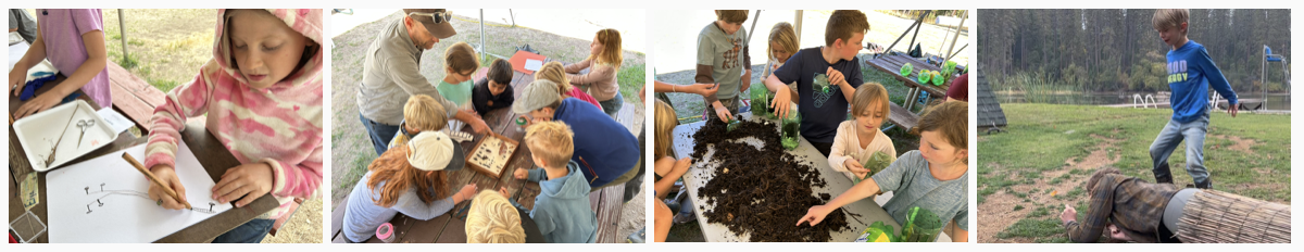 This photo was taken during our end of the year campout in June 2024 featuring four of our fantastic students (Wendell, Malachite, Gavi, Elouise) and teacher Stacey.